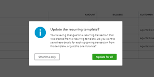If you have made changes to the template, like adding additional pass thru items, click the gray “Save” button twice. Quickbooks will ask you if you would like to save the changes to the template. Choose yes if you would like these same GLs to appear the next time you open this template.