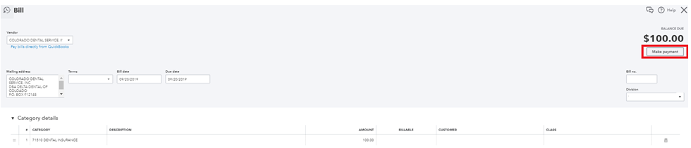 Once you have update/saved changes to the bill, you should see a button appear that says “Make Payment.” Click this button.