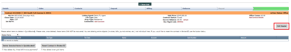 Select “Edit Header” at the top of the contract.