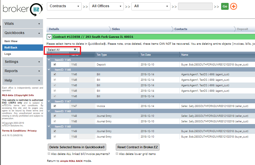 Click the gray “Delete Selected Items in Quickbooks” button. You should see the transactions clear once you do this. Note: You should still see escrow payments.