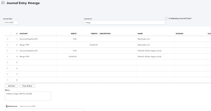 1. Create a G/L named: Merge 1099