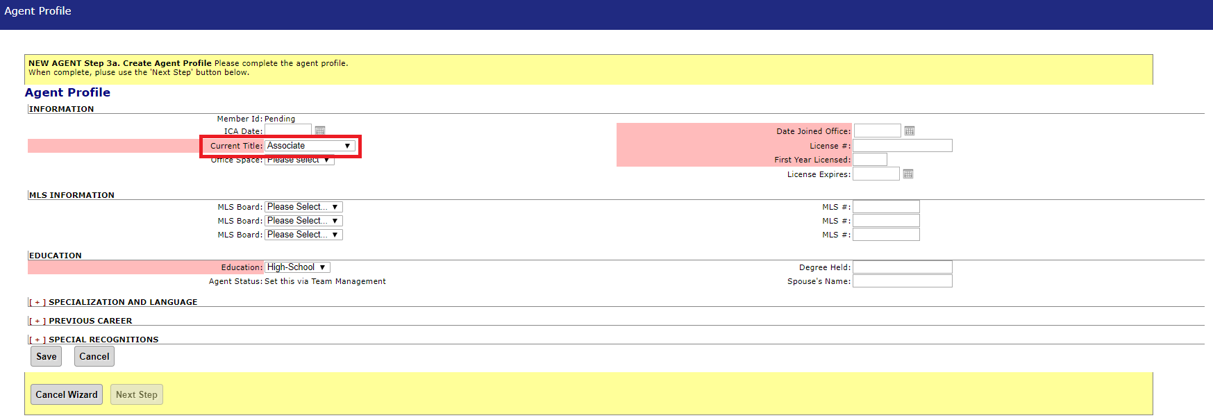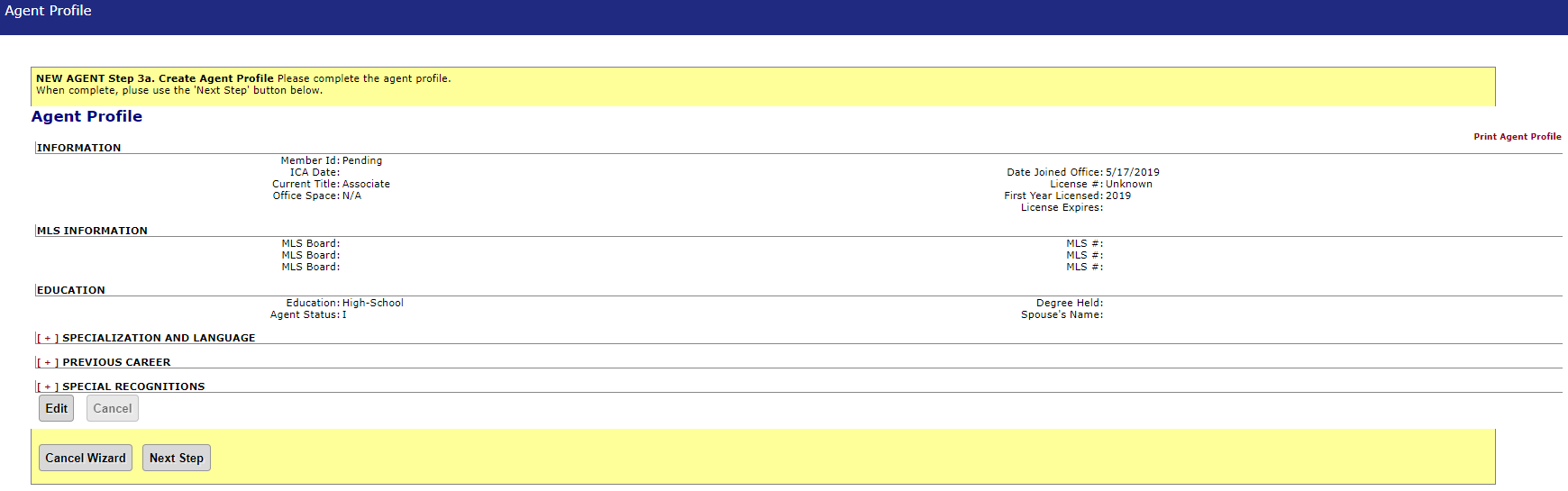 Enter the date the Agent joined the office, as well as their license information. If you do not have the license number, enter "Unknown".