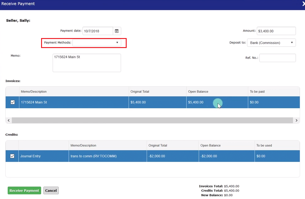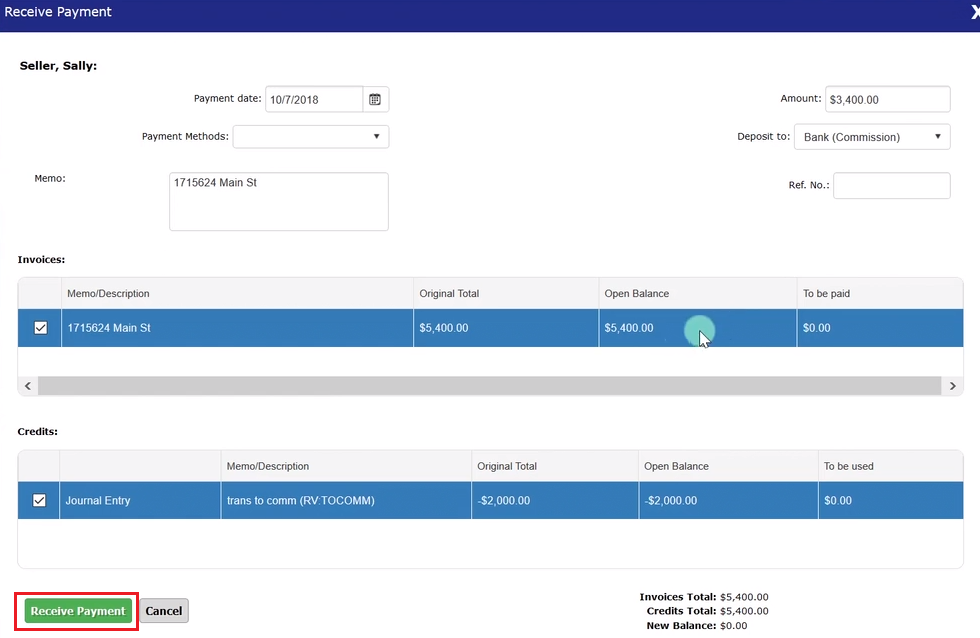 Select the green “Receive Payment” button.