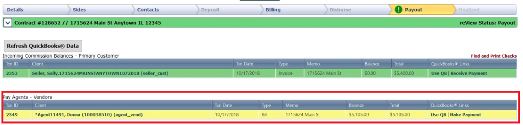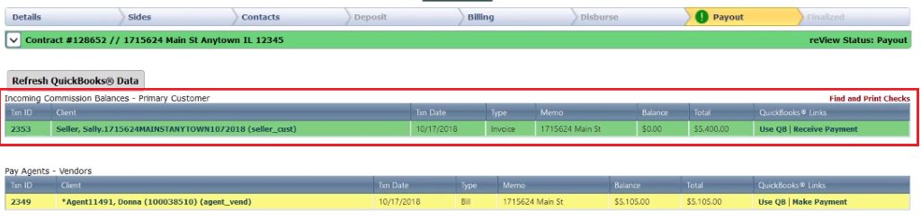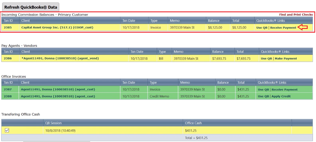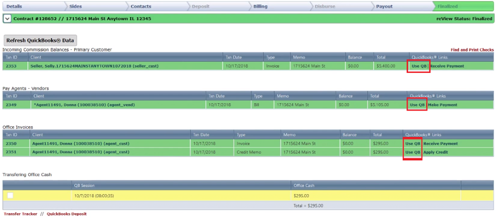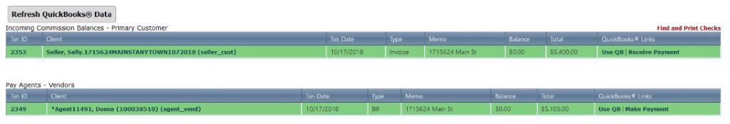 A note, we made and received payments through Broker.Ez, however, if you wanted to jump directly into QuickBooks, you can click the “Use QB’ link to deep link into QuickBooks.