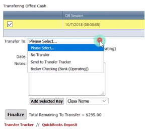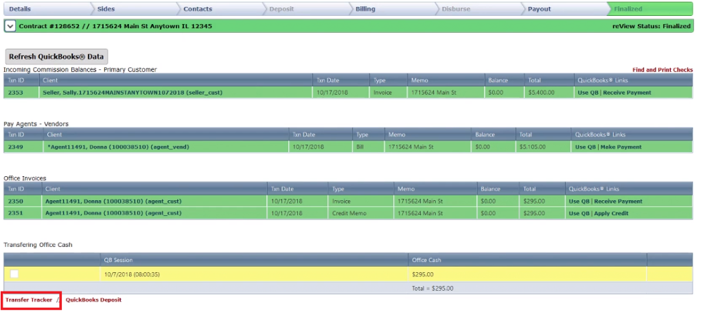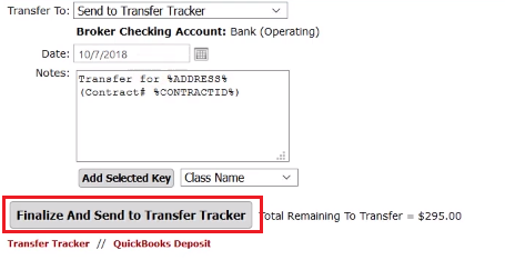 If you periodically transfer (at the end of the day/week), you can use the “Transfer Tracker” feature. It will take the amount of cash flow that belongs to the office from this particular closing and it will memorialize it, so that you can later do a bulk transfer at a later time.