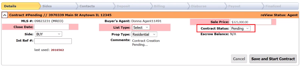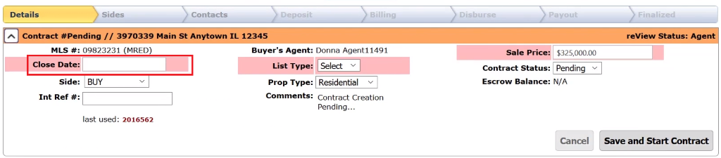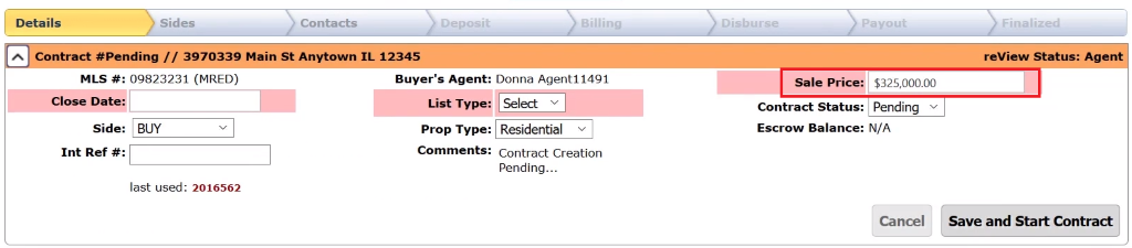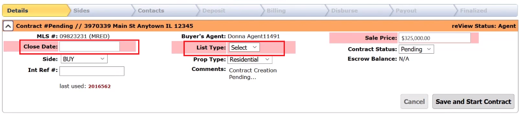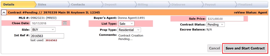 If you scroll down, you can see that it will know if you are on the List or Buy side, which office will be processing the deal, and which agent. Please verify this information before proceeding. You can elect to override any of these if you need to.