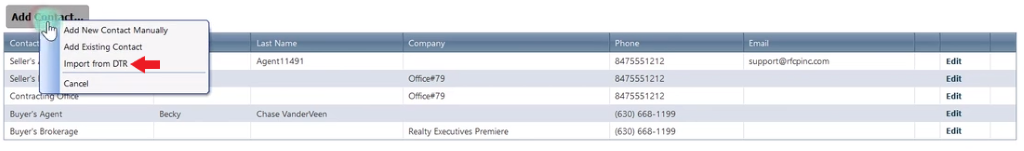 Here you can import your contacts manually or “Import from DTR.”