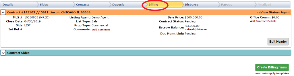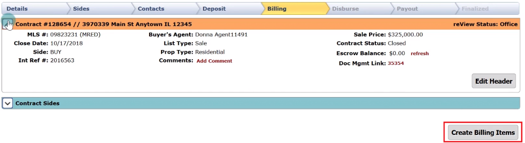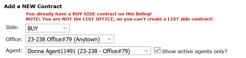 Once you have verified the office and agent information, select the green “Create Buy SIDE Contract” button.