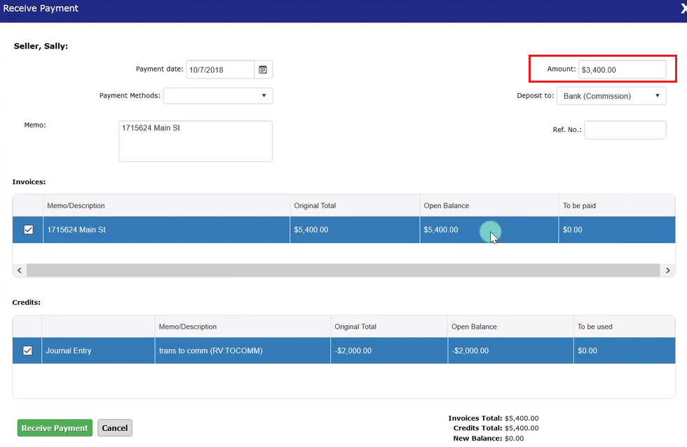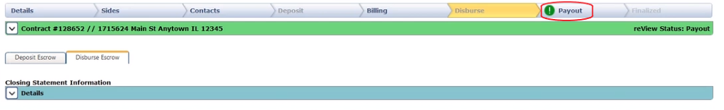 The first step in processing the payout is to address the inbound funds from the closing. Select the “Receive Payment” link.