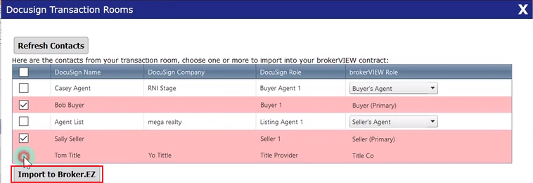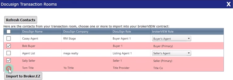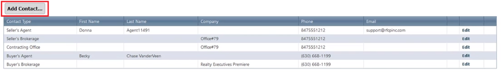 Select Contacts (Typically, a buyer, a seller, and title)