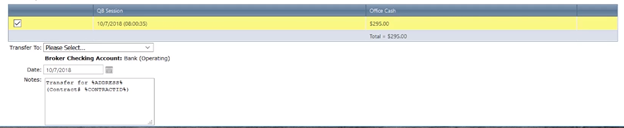 If you transfer your money at the end of every closing between your commission and operating account, you would select “Transfer To: Broker Checking Bank Operating.”