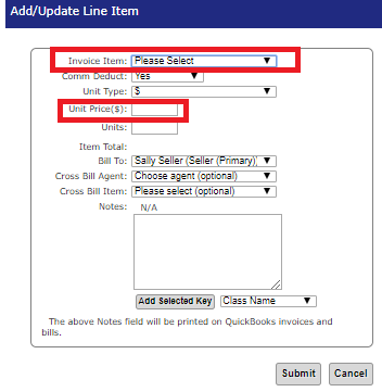 The agents closing template will automatically apply. You may select additional items not on the template by clicking “Add Items.”