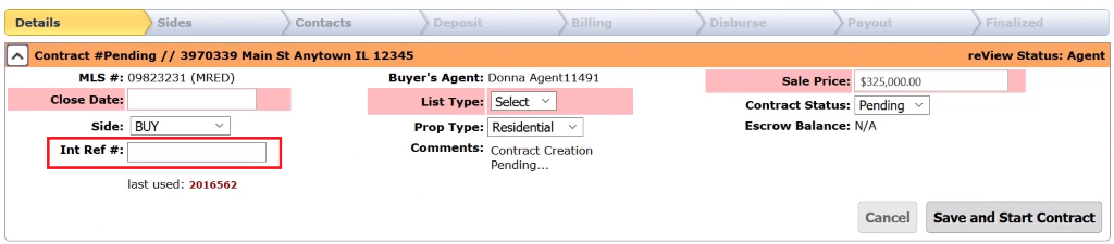 There is also an area for an internal reference number, if your office uses an existing numbering system. Each additional contract will populate the next number in the sequence.