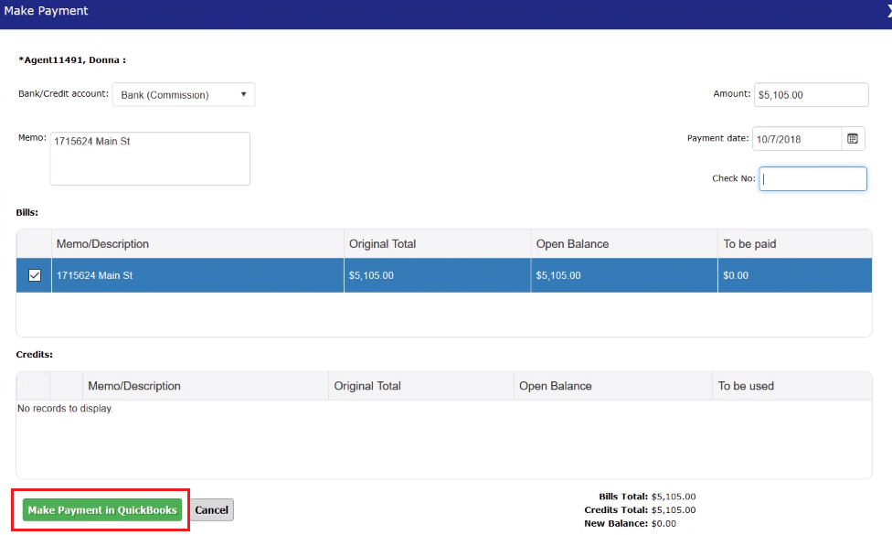 Select the green “Make Payment in QuickBooks” button.