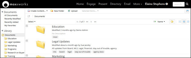 - Choose to Create Content, Create a New Folder, or Upload a Document.