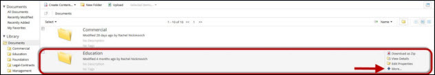- Once you have decided to which folder or document you are going to add permissions, hover over the item with your mouse and options will appear on the right (see below).