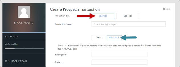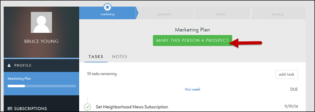 3. Select MAKE THIS PERSON A PROSPECT to start a transaction (see below).