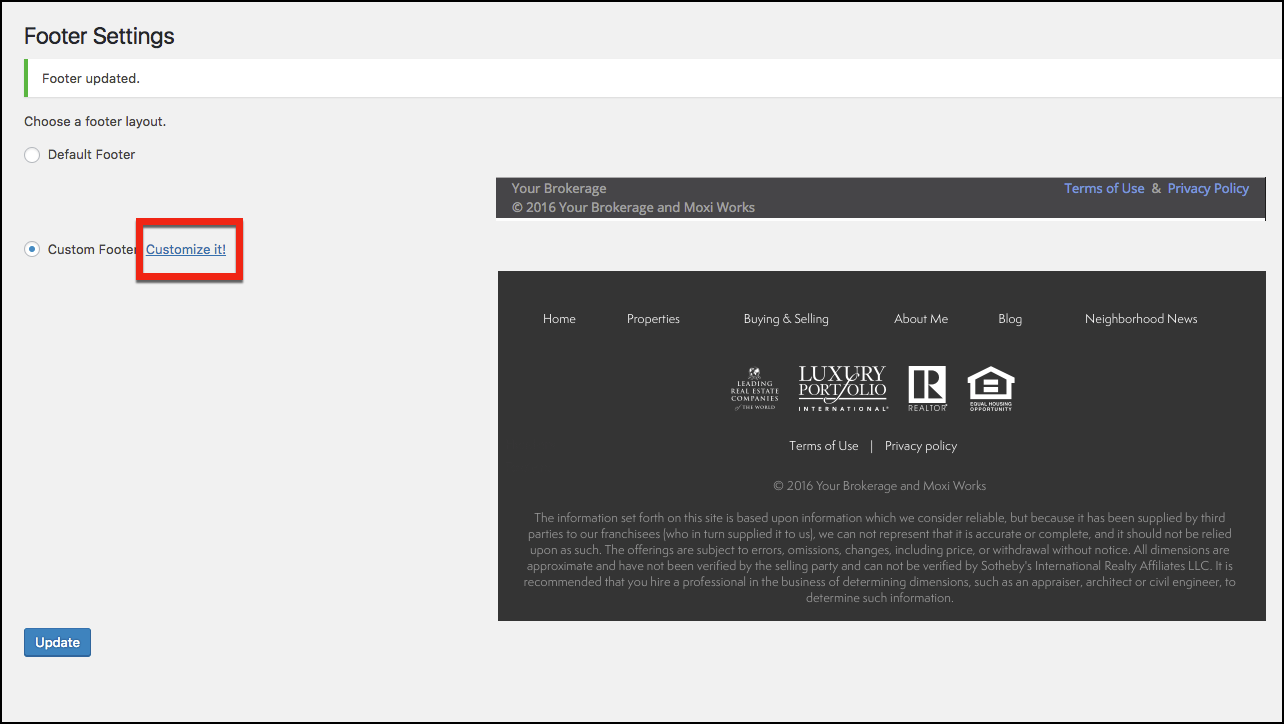 You may want the Footer of your Agent Website to contain more information or include links. You can customize the footer of your Agent Website to include any information you would like your people to see!