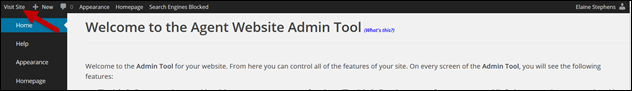- From your Website Admin, click on View Site under the Admin Tool Bar (see below).