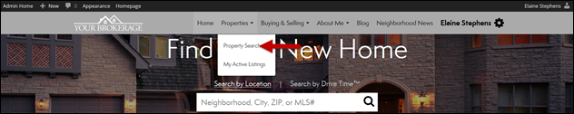 - NOTE: Property Search may also be located on your menu bar by Home.