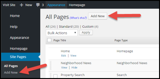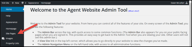 - On the Admin Tool Bar, select Site Page (see below).