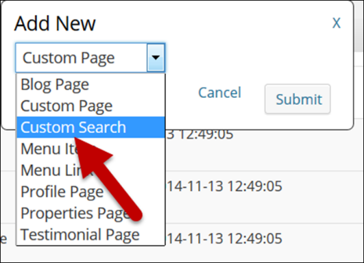 - This brings you to the Add New Page pop up box. Select Custom Search (see below).