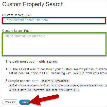 - Add a title for your search in the Custom Search Title field (see above, circled in red).