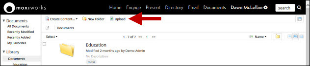 - Once signed into the DMS, click Upload (see below, indicated by the red arrow).