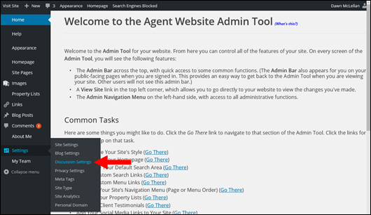 - Select Discussion Settings from the Settings menu (see below).