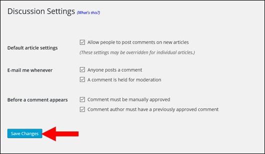 Discussion Settings allow you to dictate who can comment on your blog posts, what email notifications you want to receive, and what action you want to happen before a comment appears on your blog for others to read.