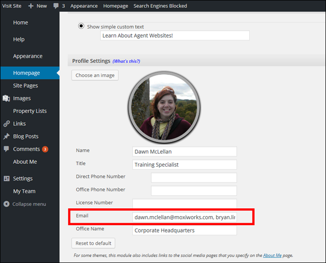 NOTE: If you have Moxi Engage, connections made through your agent website will be added to your contact database. Contacts will be associated with the main Engage account holder.