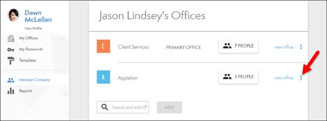 - Select the actions button for the office you want to set as primary (see below).