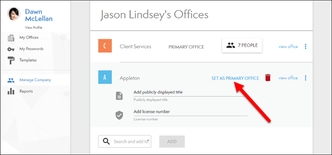 - Click Set As Primary Office (see below).