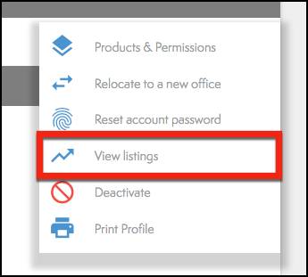 - From the drop-down menu, select View Listings (Circled below)