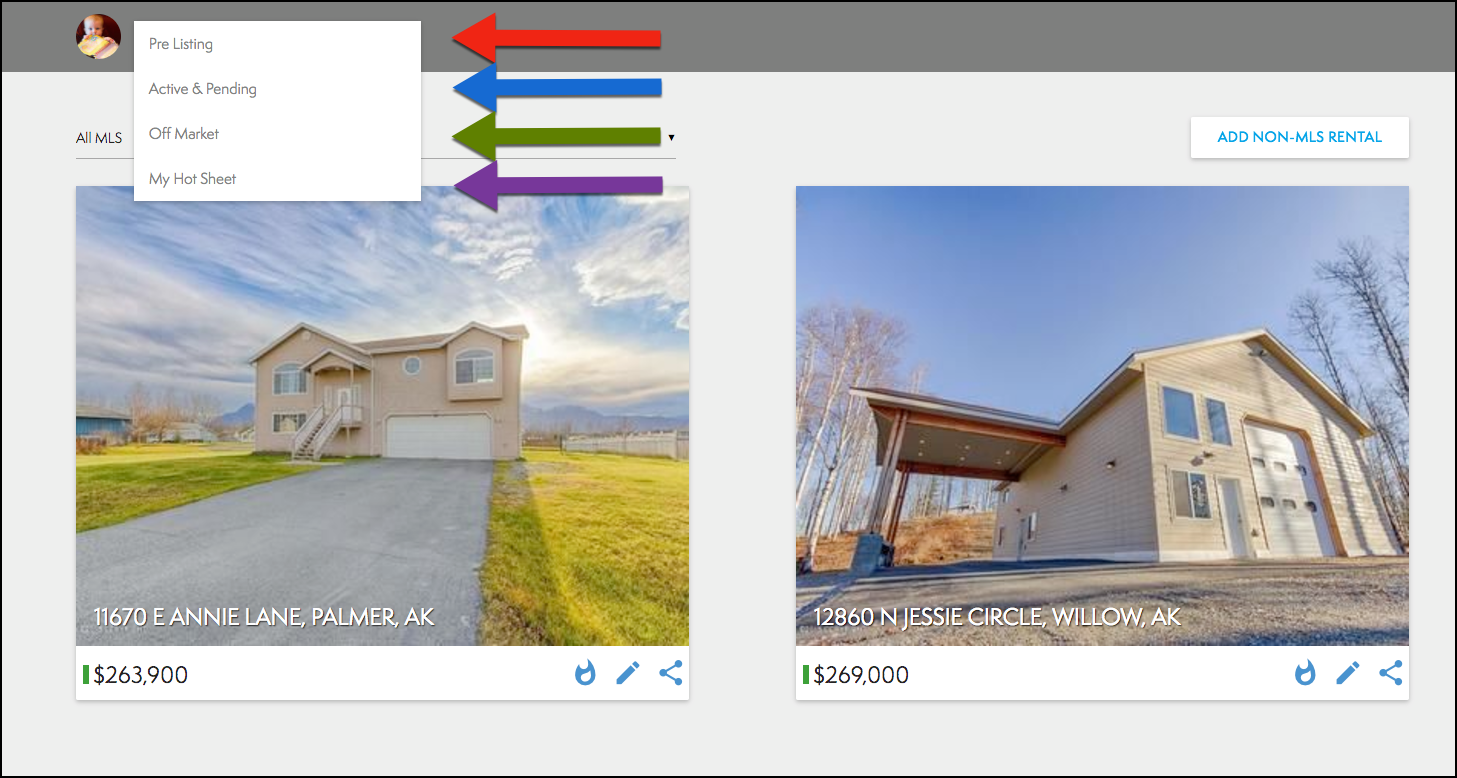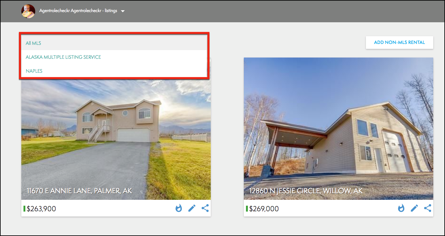 - You can also filter by MLS, select the All MLS drop down menu and choose the correct MLS (Circled below).